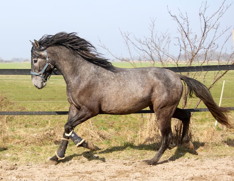 Garibaldi is already an absolute eye-catcher at the age of two. It's not easy to forget this face. The big eye, the slightly rammed nose, the long neck with a fine nape - everything just fits together. Garibaldi comes from a sporty line on his father's side and from a line of classic working horses from the Spanish bull pastures on his mother's side. He was born with movement, agility, light-footedness and endurance. With his excellent conformation in the breed type, he is therefore highly interesting both as a riding horse and for later breeding purposes. Breeding shows for Spanish horses would also be an excellent arena for him. Garibaldi has good to very good basic gaits. Born in the north of Germany, Garibaldi is used to German pastures and is 100% free of piroplasmosis. All our horses are barefoot, so this should not be a problem for this young stallion either.