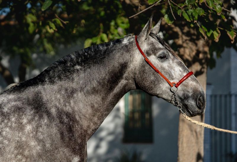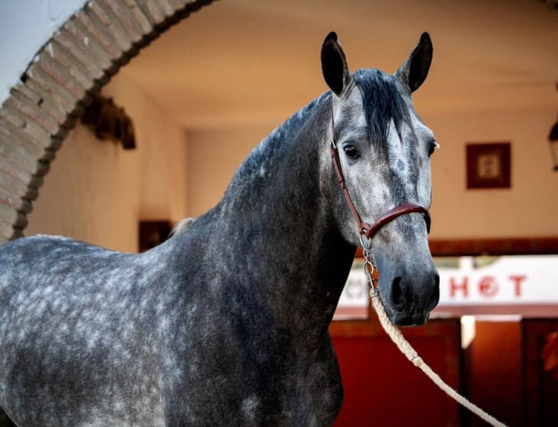 Lovely young stallion PRE with quality for dressage for his innate skills. He is learning very quickly under saddle and his excellent behavior is showing off a beautiful way to feel that he has potential for higher levels. He is doing the basic work with transitions.