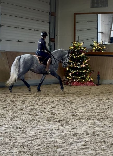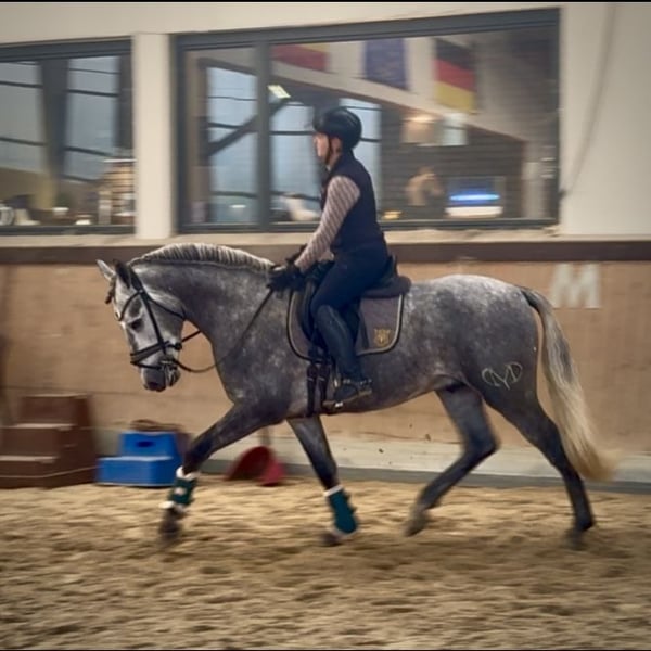 Tejon is a 3-year-old PRE stallion currently being broken in under saddle. He is a lovable, calm horse with a friendly and curious nature. Working with Tejon is a great pleasure, whether on the ground or riding. He has a very good walk and a spacious, expressive canter. In trot, we are focusing on balance, rhythm, and relaxation, as is typical for a young horse at this stage. This raw diamond has a lot of movement potential, combined with seat comfort and an exceptionally sweet character. At the moment, I ride him lightly three times a week for about 20 minutes each session. Once a month, I train my horses with André Keus, a certified equine trainer, to ensure that his training progresses appropriately according to the age and the FEI development scale. Tejon loves human interaction and learns very quickly. He has 18 X-ray images taken according to German standards, all without findings. The photos show that I initially backed him in Spain at my friends’ stud farm, and since early October, he has been being further trained at our riding facility in Emstal, in accordance with his age. This is my passion and joy! I offer test rides only during a lesson I conduct myself, valued at €75, as he is still very young. Appointments are scheduled at intervals that are manageable for him. In cooperation with our veterinary clinic, castration is possible, along with post-operative care and subsequent training. We also offer transportation of the horse to its new home. For serious inquiries, please contact me only via WhatsApp at 0171-3776471.