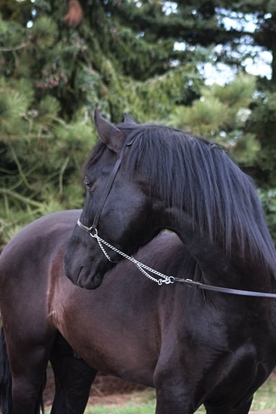 A beautiful three-year-old PRE stallion is looking for a new home. Imported from Spain, he has full pedigree and an ANCCE passport. His sire, from Yeguada Militar - Cepellon is one of the most succesfull and decorated stallions. A high quality future horse. He has spectacular movement with high front leg action, currently standing at approximately 163/4 cm, and expected height at 166/7 cm. He is very well-behaved and has already experienced the normal life of a horse, which means he goes out to the paddock daily with a friend. He doesn't have any vices such as weaving, cribbing, kicking biting box walking , etc. He is a smart, people-oriented horse. Very easy and well behaved in handling and fed high-quality feed. He will be a spectacular representative of his breed with a beautiful black coat. The future owner can decide whether he will remain a stallion or a gelding. He has fresh X-rays of his legs and back—all are clean. More WhatsApp + 48 513 179 245