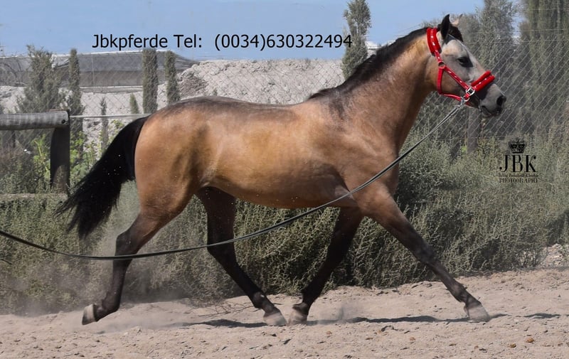 Nazareno es un excelente joven semental con muchas cualidades. Ya es bastante grande, pero aún así es absolutamente ágil y maniobrable. Nazareno se maneja bien consigo mismo y se mueve de manera equilibrada para su corta edad. Creció en un grupo y ahora ha sido estabulado. Desde hace poco conoce el trabajo en cuerda y está abierto a todo lo demás. Es un placer trabajar con él, ya que es un caballo inteligente y astuto que aprende rápidamente. Además, en su línea tenemos a Ermitaño, un semental élite aprobado de la cría de Escalera de la Escalera. Lazo Díaz Llavanero y Paco Martí también se encuentran en su línea de sangre. Nació el 07.04.2023.