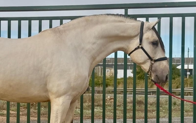 Excellent opportunity to acquire a magnificent horse! We are offering a beautiful PRE stallion, born in 2023, for sale. He is buckskin/bay, standing at 16.1 hh, making him an ideal choice for those seeking a high-quality and stunning individual. Perfect for breeding, dressage, or shows, this horse combines elegance, strength, and character. Don’t miss the chance to own a stallion with excellent lineage and presence. For more information, please do not hesitate to contact us.