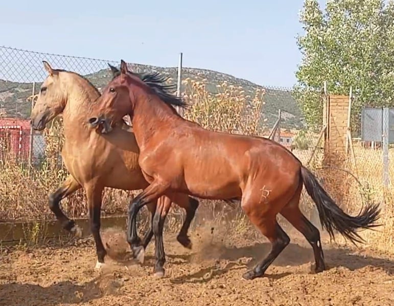 Caballo PRE de 2 años, semental castaño. Padre de 168 cm a la cruz, compite en concursos de la Real Escuela Andaluza del Arte Ecuestre (últimas 3 fotos). Más información para los interesados.