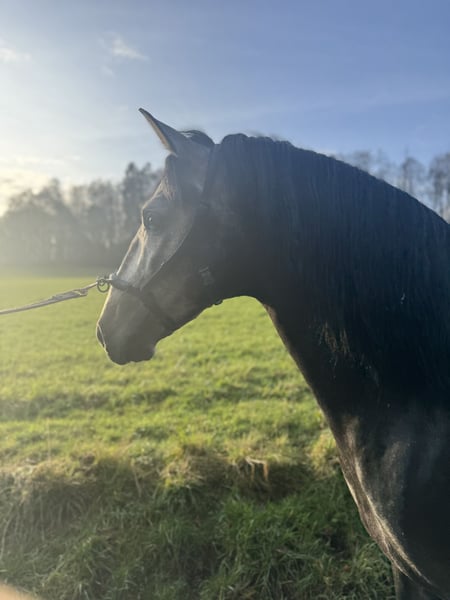 Beautiful 3-year-old P.R.E. stallion, recently started under saddle with gentle training. He is very intelligent, friendly, and has a positive attitude towards work. For his young age, he is well-balanced and makes steady progress every day. The stallion has three good to very good basic gaits, characterized by much quality. His walk currently requires a bit more time to fully develop, which is age- and training-related. Trot and canter are active, well-balanced, and showcase a lovely mechanics. He is easy to handle, well-behaved in daily interactions, and instills confidence in the rider. The video shown in the listing was recorded during his first session in this arena, highlighting his calmness and strong nerves. Good X-ray results are available. The stallion is currently located in Luxembourg and can be presented for inspection by arrangement.
