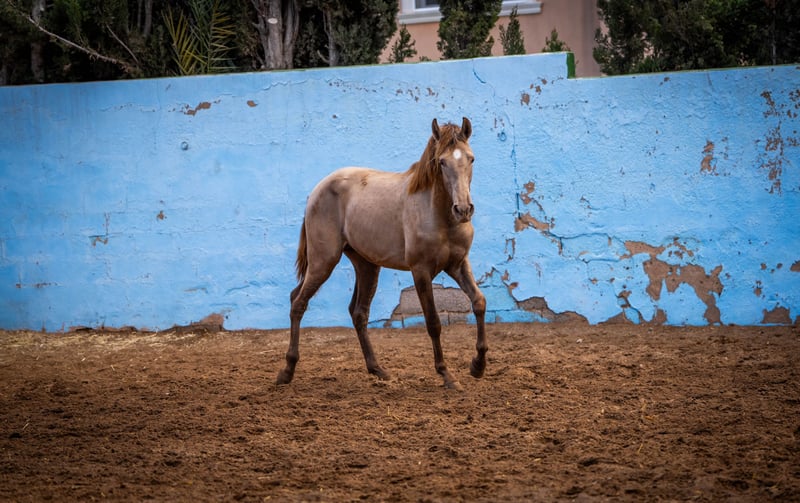 Young horse: Another chic champagne stallion with the color genetics: ggaaEEPRLPRL. So it always releases a Pearl gene 100%. He is very well socialized and, as you can see from the photos, very playful. He wears Peralta, Yeguada Militar, Bohorquez Blood and Torreluna. / More information on request!