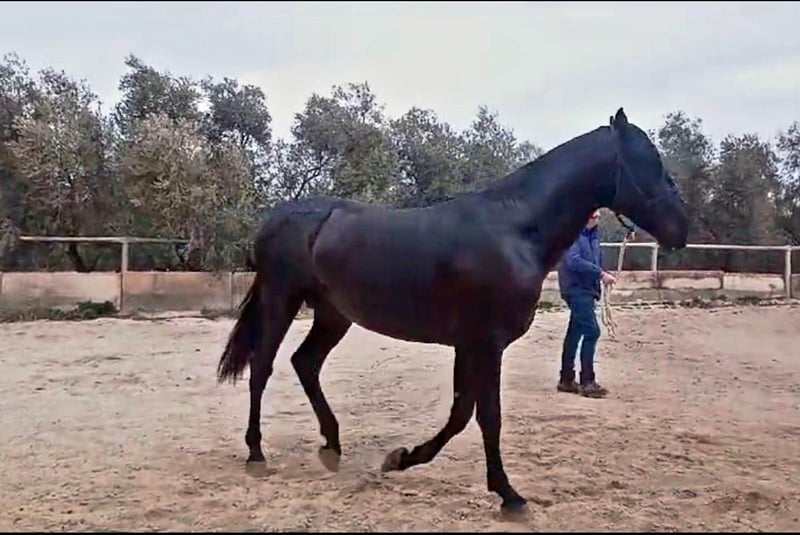 Dit jonge zwarte paard maakt indruk met zijn elegante verschijning en vriendelijke karakter. Met zijn stokmaat van 162 cm is hij de ideale metgezel voor de vrijetijdsruiter die op zoek is naar een betrouwbare en charmante partner. Zijn uitstekende afstamming en gelijkmatige temperament maken hem het perfecte paard voor iedereen die kwaliteit en karakter waardeert. De hengst is leergierig en klaar om samen met zijn nieuwe eigenaar de wereld te ontdekken. Als je op zoek bent naar een trouwe metgezel voor ontspannen ritten en harmonieuze uren in het zadel, dan is deze PRE-hengst precies goed voor jou. Als je geïnteresseerd bent, horen we graag van je om je meer informatie te geven en een bezichtiging te regelen. Het paard wordt verkocht in opdracht Hij mag bij ons in training blijven. Een AKU wordt op korte termijn georganiseerd. Internationaal transport.