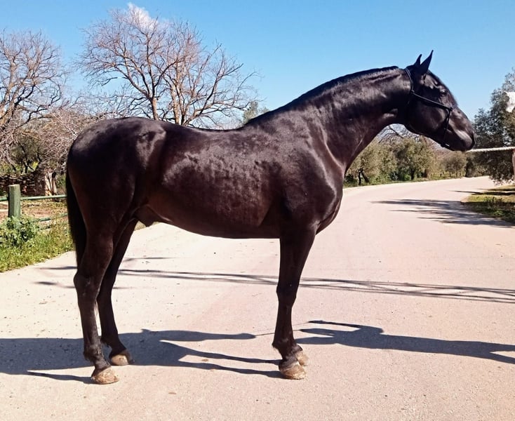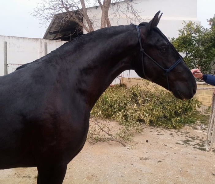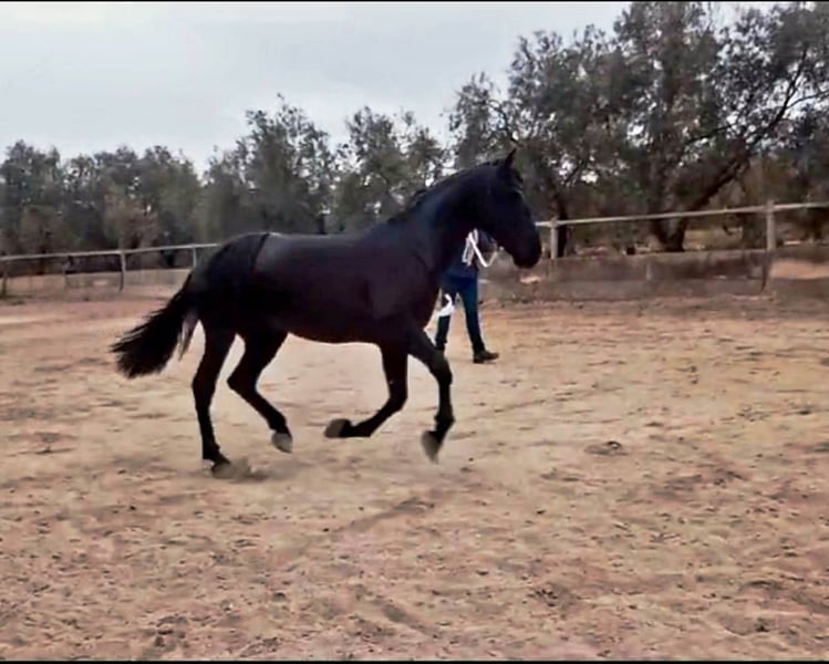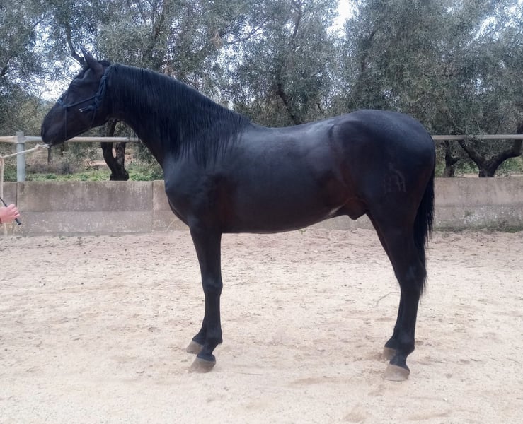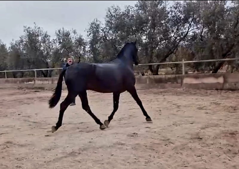 This young black horse impresses with his elegant appearance and friendly nature. With a height of 162 cm, he is the ideal companion for the leisure rider looking for a reliable and charming partner. His excellent pedigree and even temperament make him the perfect horse for anyone who values quality and character. The stallion is eager to learn and is ready to discover the world together with his new owner. If you are looking for a loyal companion for relaxed rides and harmonious hours in the saddle, then this PRE stallion is just right for you. If you are interested, we look forward to hearing from you to give you more information and arrange a viewing. The horse is being sold on behalf of us He is welcome to remain in training with us. An AKU will be organized at short notice. International transportation.