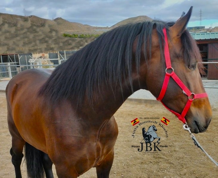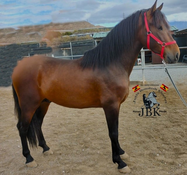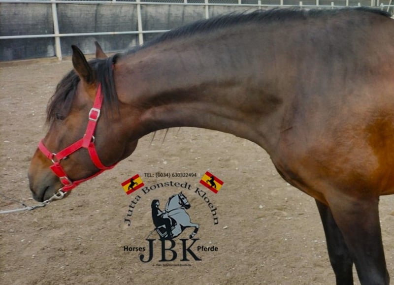 Bizarro wurde am 08.01.2022 geboren. Er entstammt Plaza de Armas, Bolix, Miura, Moreno Lovera und Guardiola Linien. Sein Stockmass beträgt derzeit 1,65 m. Bizarro kennt das Fohlen ABC, ist mittlerweile an Sattel und Trense gewöhnt und lässt sich in kurzen Reprisen in den drei Grundgangarten auf dem Platz ohne Probleme reiten. Charakterlich ist er ein Schatz. Wer Spass an einem solch tollen Jungpferd hat, hier haben wir ein klasse Exemplar.