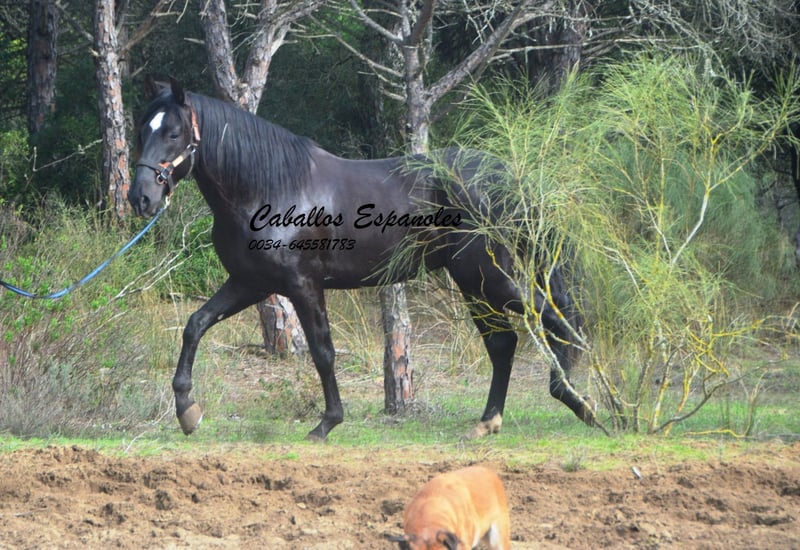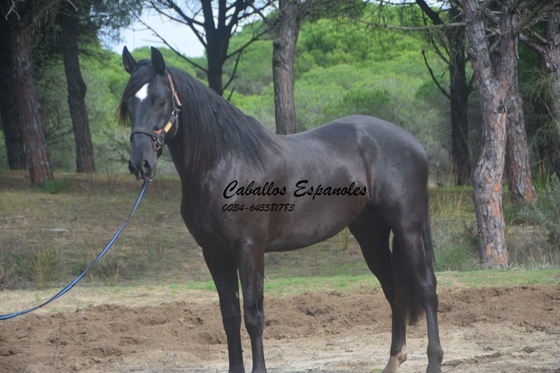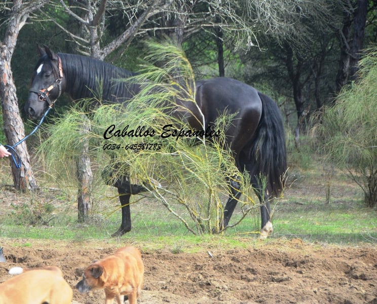 Deze grote PRE-ruin is correct en harmonieus gebouwd. Onder zijn pony steekt altijd het witte sterretje uit. In de omgang is hij zeer braaf. Toen wij hem uit de box haalden, liep hij probleemloos langs een aangespannen merrie. De ruin is zeer mensgericht en laat zich graag kroelen. Hij is altijd alert en luistert goed. Hij is longeerbaar en kent het zadel. Daarbij is hij heel ontspannen. De jonge hengst beschikt over drie goede basisgangen. Hij heeft een uitstekende stap en een zeer evenwichtige, omhoog springende galop. Een geweldig paard voor de dressuur en voor Working Equitation. Het paard wordt in opdracht verkocht. Hij kan indien gewenst nog in training blijven bij ons. Een gezondheidskeuring (AKU) wordt op korte termijn geregeld. Internationale transportmogelijkheden.
