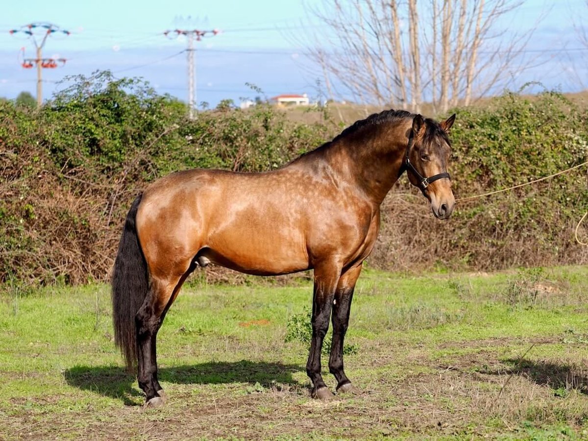 We present a young horse with enormous potential, combining a very uncommon set of qualities within the Purebred Spanish Horse breed: a particularly attractive colour together with a marked baroque type, increasingly difficult to find in young horses with sporting projection. Born in 2022 and currently standing at 166 cm, this stallion stands out for his harmonious and well-balanced conformation, with a physique that conveys strength, balance, and presence. His structure is ideal for those seeking a PRE with clear racial identity, without sacrificing functionality or quality of movement. In terms of mechanics, he shows good natural movements, with special mention to the activity and engagement of the hindquarters, providing impulsion and ease for future work. He offers a correct and expressive trot, as well as a balanced canter, key qualities for positive development in dressage. These attributes, together with his elasticity and coordination, suggest a very promising progression in the medium and long term. He is currently in the initial stage of training, being ridden at a basic level on the circle, where he is already demonstrating a very cooperative attitude and great ease of learning. He is a horse that approaches work with willingness, calmness, and a clear mind. He will soon begin arena training, a natural next step in his development, where he will start to consolidate more technical foundations. From a genealogical standpoint, he comes from proven bloodlines, being sired by Unfano AC and a grandson of Ringo AC, lines known for producing quality, expression, and good temperament. An excellent opportunity for those seeking a young, baroque PRE with projection and proven genetics, suitable both for personal enjoyment and for a future sporting or breeding career.