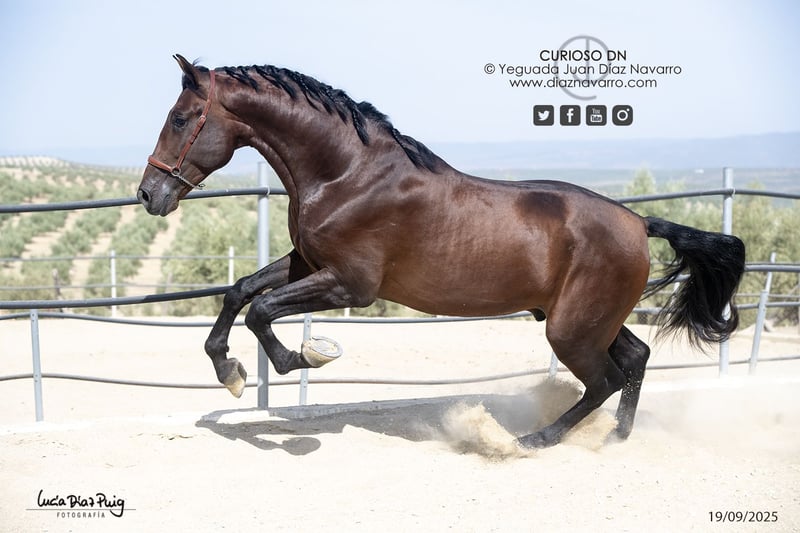 ¡Oportunidad de adquirir un magnífico semental! Se ofrece en venta un hermoso caballo PRE, de raza barroca, nacido en el año 2022. Este ejemplar destaca por su impresionante alzada de 180 cm, ideal para quienes buscan un caballo de gran porte y presencia. Su color castaño le confiere un aspecto elegante y distinguido. Este semental combina belleza, nobleza y potencial. No pierda la oportunidad de incorporar a su establo un ejemplar excepcional. Doma: de cuadra; primeras tomas de contacto con la silla de montar. Trabajo con cinchuelo y riendas fijas. Comentarios: potro con mucha alzada y hueso, carácter noble; inteligente. Líneas: Rumex, Corzo IV, Deco, Velero XI, Lebrijano III, Lego, Cepellón, Colombiano III. Ventura Camacho, Granda, Yeguada Militar, Vizconde de la Montesina, Romero Benítez, Bohorquez. Para más información y detalles, no dude en contactarnos.