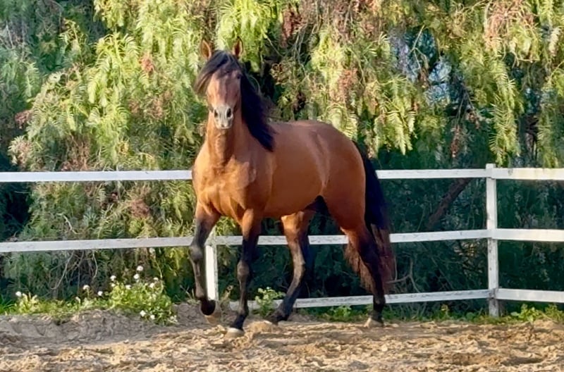 Excellent opportunity to acquire a magnificent horse! For sale is a beautiful PRE stallion, born in 2021. With a rich chestnut coat, he stands at 15.9 hh, making him ideal for those seeking a horse with presence and elegance. Specializing in dressage, this horse is known for his noble temperament and excellent willingness to train and compete. Don’t miss the chance to own a horse of exceptional quality. For more information, please do not hesitate to contact us.