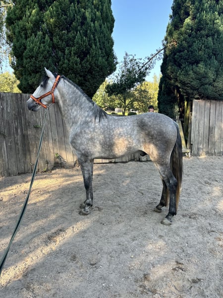 Sonderpreis für kurzentschlossene Verkaufe PRE Hengst – Schimmel, geb. 2020 Zum Verkauf steht ein eleganter PRE Hengst, mit aktuellem Stockmaß von 160 cm, Gardel V ist er ein echter Blickfang. und bestens für die Freizeit, Dressur, WE geeignet und überzeugt durch sein angenehmes Temperament sowie seine vielseitigen Einsatzmöglichkeiten. Er steht am Anfang seiner Ausbildung, freundlich im Umgang und zeigt viel Potenzial nicht nur für den Freizeiteinsatz. Ob für ausgedehnte Ausritte, Spaziergänge oder entspannte Stunden im Gelände – dieser PRE Hengst ist der ideale Begleiter. Ausritte alleine und auch mit Hengsten / Stuten kein Problem. Er ist ein typvoller spanischer Hengst. Er wird fein ausgebildet und ist entsprechend fein an den Hilfen. Er hat viel Potenzial was gefördert und gefordert werden sollte. Er wurde im letzten Jahr aus Andalusien importiert. Barhuf und Ekzemfrei. AKU aus dem letzten Jahr vorhanden. Bei Interesse oder für weitere Informationen stehe ich gerne zur Verfügung. Besichtigung und Probereiten nach Vereinbarung möglich. Auf dem letzten Bild der Vater. LINK zum Stammbaum: https://www.lgancce.com/lgpreancce/asp-publico/arbolGenealogicoPRE/ConsultarArbolGenealogicoPRE.aspx?ID=u/4canhsaAY=