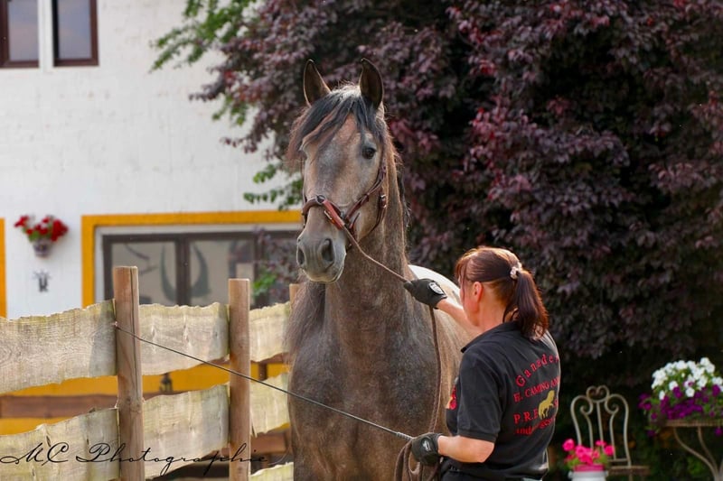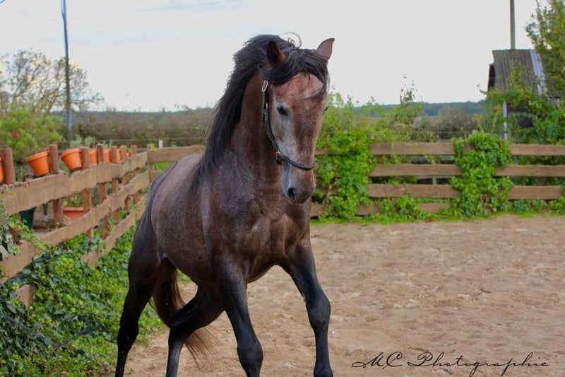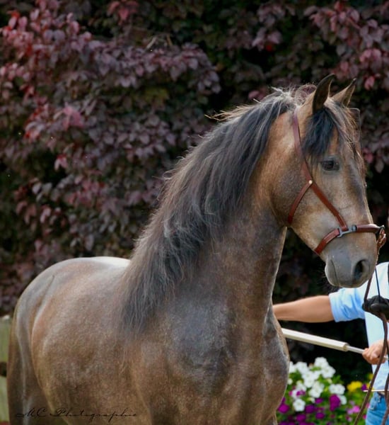 Annonce de vente Cheval Nous proposons à la vente un impressionnant étalon PRE de 2021 qui a le potentiel de devenir un magnifique cheval gris. Avec une taille de 159 cm au garrot, il affiche déjà une présence impressionnante. Ce jeune étalon a été élevé spécialement pour le dressage et montre déjà un grand talent dans cette discipline au niveau des allures. Malgré son jeune âge, il fait déjà preuve d'une maturité remarquable, ce qui en fait un partenaire idéal pour les cavaliers de dressage ambitieux. Son caractère amical et sa volonté d'apprendre font de lui un véritable trésor dans l'écurie. Si vous êtes à la recherche d'un cheval de dressage talentueux et prometteur, cet étalon PRE pourrait être exactement ce qu'il vous faut. Dans le futur, il est prêt à commencer sa carrière dans le monde du dressage avec le bon partenaire à ses côtés. N'hésitez pas à nous contacter pour de plus amples informations ou pour convenir d'un rendez-vous pour une visite. Nous nous réjouissons de vous présenter ce jeune étalon exceptionnel.