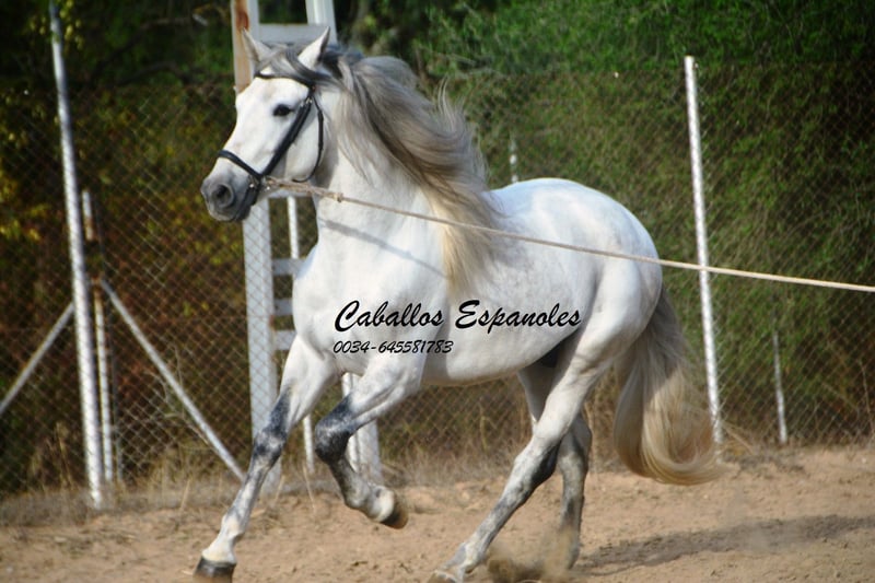 A stunning, beautiful PRE stallion with a classic baroque appearance of the old type. The young stallion is correctly conformed and harmoniously built. He has an exceptionally calm temperament, is very well-behaved when groomed, and stands quietly next to another stallion. My lively dogs have never bothered him. This grey is equipped with three good basic gaits that are very comfortable to sit. His canter is beautifully uphill and expressive. He has been ridden in the basic gaits, and work is ongoing on leg-yields and shoulder-in. He has also been ridden in the field and proves to be very well-behaved there as well. Pedigree: Sire is Hacendado (Marin García), Pampero VII. The horse is being sold on behalf of the owner. He can remain in training with us if desired. A veterinary examination (AKU) will be organized shortly. International transport can be arranged.