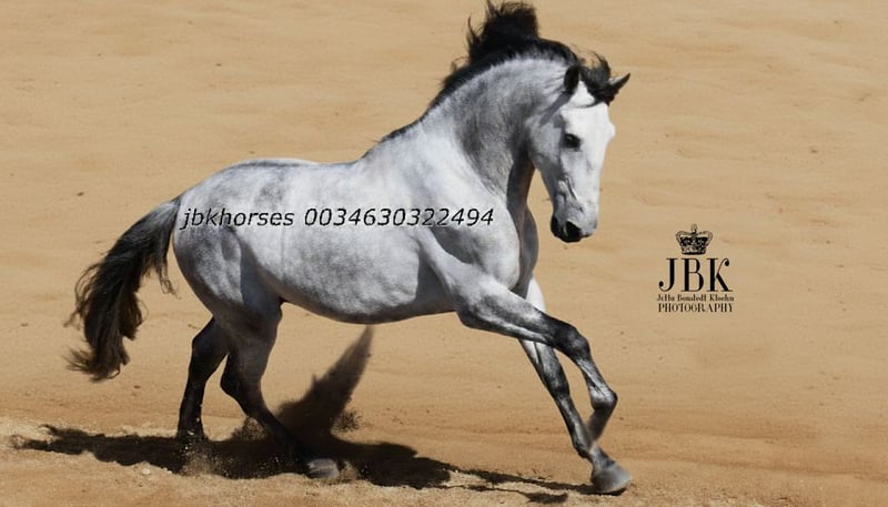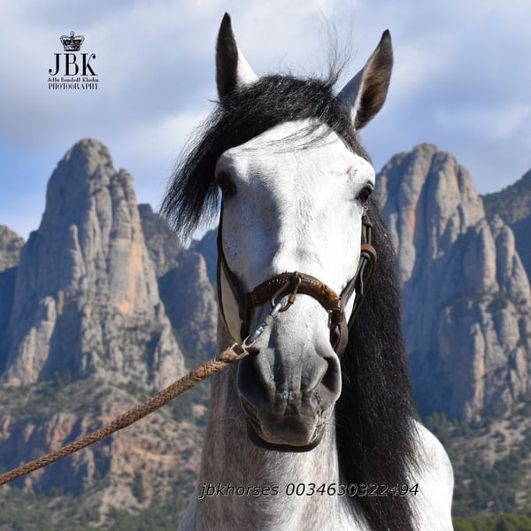 PRE Hengst Abogado Arcos werd geboren op 16-05-2021. Hij groeide op in een kudde, werd op 3-jarige leeftijd op stal gezet en is nu solide en veilig bereden in de gangen. Ook kleine uitstapjes om de hoek kent hij. Een paard dat serieus en betrouwbaar meewerkt. Van hem hoeft men geen onzin te verwachten. Want zijn naam staat al voor soevereiniteit. Abogado is een kleinzoon van de elite dekhengst EDUCADO X uit de Guardiola fokkerij. Miura, Novales, Bariain, Muñoz en Terry ronden de verdere bloedlijn perfect af.