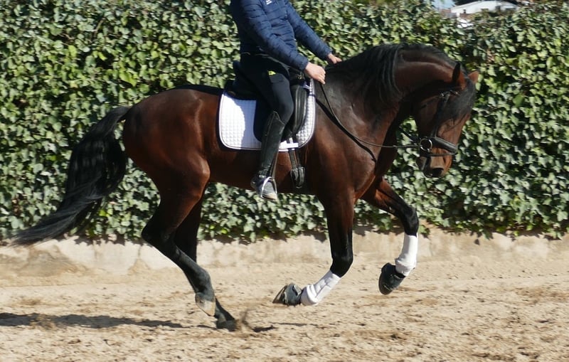 This horse is a great option for dressage. 3 good gaits, amplitude, much potential. He can be ridden by any rider. Very good character, calm temperament, no spook. He is big and tall, but very light to ride. In our stable in Barcelona. Around 20 similar horses. We can organize your visit, pick you up at the airport, organize transportation. xrays are available before your visit.