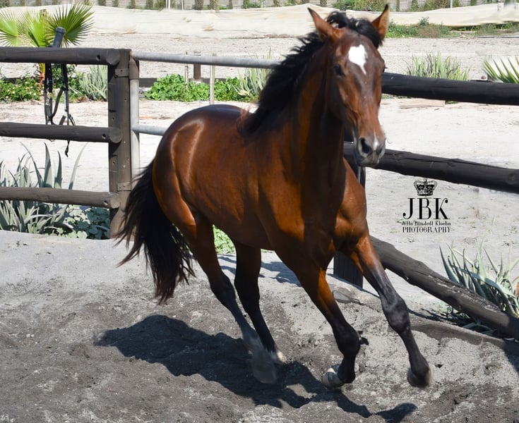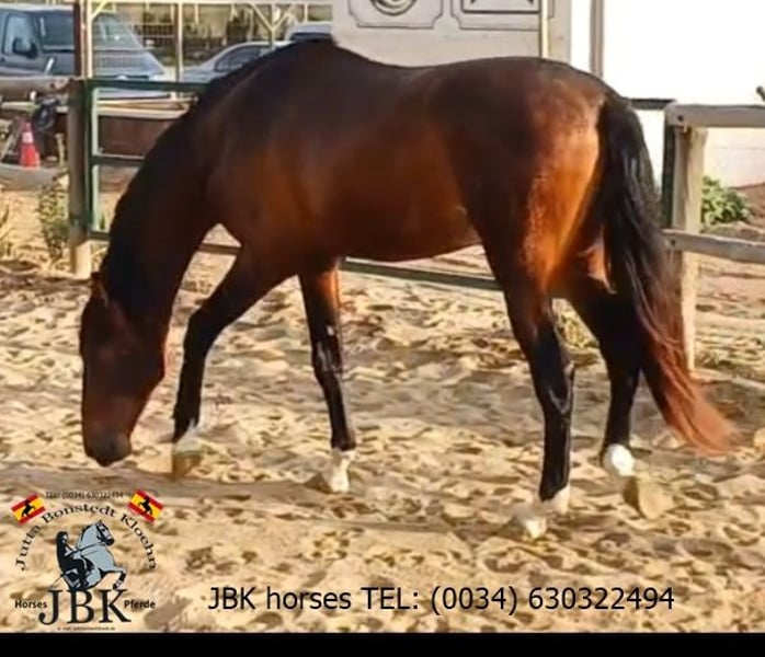 Le hongre PRE Primoroso est né le 24 juillet 2021. C'est déjà un spécimen assez grand. Primoroso a grandi en troupeau avec des compagnons de même âge et a été mis en box à l'âge de 3 ans pour apprendre correctement les bases de l'éducation des poulains. Il est facile à manipuler et ne pose aucun problème. Il connaît également bien le travail en longe et se montre coopératif dans son travail. Primoroso aime être avec ses humains et essaie toujours de bien faire. C'est un diamant brut avec lequel il est agréable de progresser.