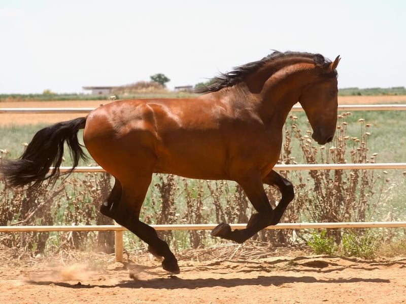 Wir präsentieren ein außergewöhnliches Exemplar, geboren im Jahr 2021, das sich sowohl durch sein imposantes Stockmaß von 181 cm als auch durch seinen edlen Charakter und seine hervorragende genetische Qualität auszeichnet. Derzeit befindet er sich in der Anfangsphase der Ausbildung: arbeitet unter dem Sattel und beginnt, das Reitergewicht zu akzeptieren, wobei er Lernbereitschaft, Gleichgewicht und eine sehr gute Einstellung zeigt. Dieser junge Hengst stammt aus national und international renommierten Blutlinien. Er ist Enkel eines Elite-Deckhengstes des angesehenen Gestüts Yeguada Centurión, und seine Großmutter mütterlicherseits trägt ebenfalls den Titel einer anerkannten Zuchtstute desselben Gestüts. Die Yeguada Centurión steht für Exzellenz in Morphologie und Funktionalität – und dieser Hengst ist ein würdiger Vertreter dieser Tradition. Mit kraftvoller Statur, raumgreifenden Gängen und einem ausgeprägten Rassetyp ist dieser Hengst eine sichere Wahl für Liebhaber von Morpho-Wettbewerben sowie für anspruchsvolle Züchter, die ihre Linien mit einem erstklassigen Deckhengst verbessern möchten.