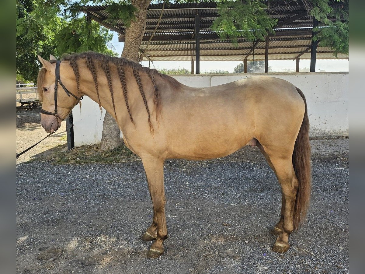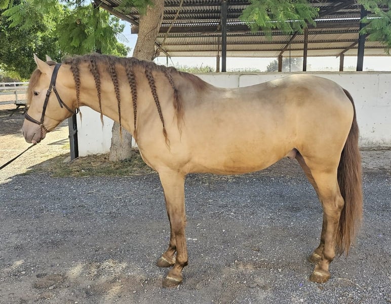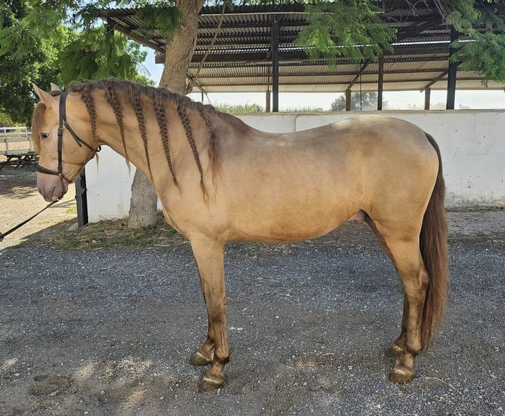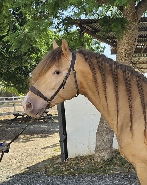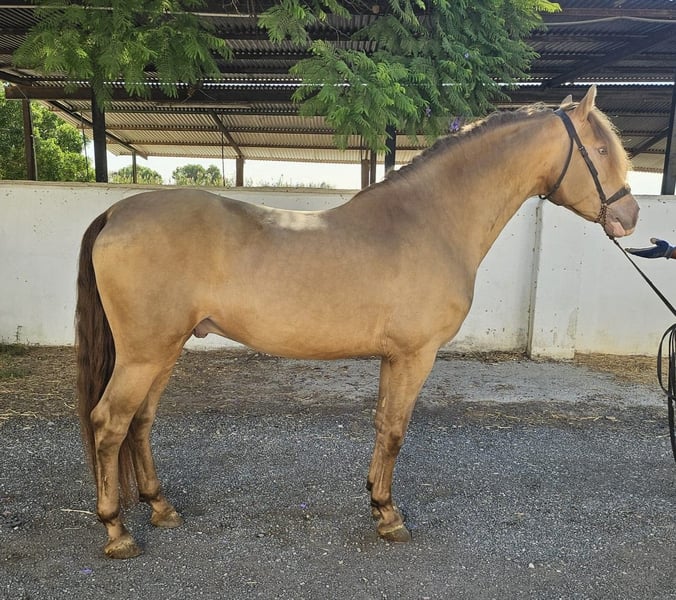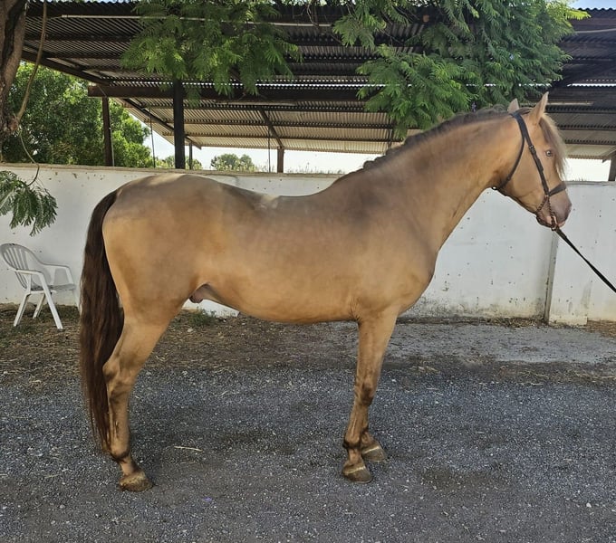 This stunning PRE stallion in the special color Isabelo is looking for his soulmate. Not only is his color special, but so is his character; he is very people-oriented, outgoing, polite, and curious. At the same time, he has great gaits and is always motivated to work. He is 5 years old and 1.59 m tall. He is trained in all three basic gaits, which he does super kindly. In the future, we can imagine him in many areas, both in dressage, for working equitation, for shows, for breeding (he has not yet been licensed), or simply as a leisure partner. He spent his childhood in a large herd of mares and their foals in the pasture, and at around 8 months, he was separated from his mother and was able to socialize in a young stallion herd. He was then stabled. He comes from a private owner and was originally intended for a small hobby breeding in Germany, but unfortunately, the family has to part with him for personal reasons, so we are now looking for a new wonderful home for him. Location: Alicante, Spain; a meeting in Spain can be easily arranged, and transport can be organized without any issues.