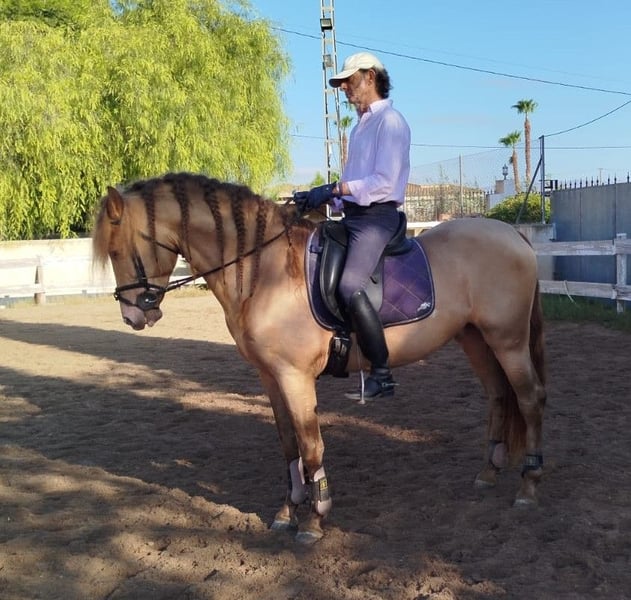 Ten przepiękny ogier PRE w nietypowym kolorze Isabelo szuka swojego człowieka serca. Jednak nie tylko jego kolor, ale także jego charakter jest wyjątkowy; jest bardzo towarzyski, otwarty, uprzejmy i ciekawski. Jednocześnie ma wspaniałe chody i zawsze jest zmotywowany do pracy. Ma 5 lat i 1,59 m wzrostu. Jest podstawowo ujeżdżony we wszystkich trzech podstawowych chodach, co robi z wielką przyjemnością. W przyszłości możemy sobie go wyobrazić w wielu dziedzinach, zarówno w ujeżdżeniu, w working equitation, na pokazach, w hodowli (jeszcze nie jest ogierem) lub po prostu jako partnera do rekreacji. Swoje dzieciństwo spędził w dużej stadzie klaczy i ich źrebiąt na pastwisku, a około 8. miesiąca życia został odłączony od matki i miał możliwość zabawy w stadzie młodych ogierów. Następnie został wprowadzony do stajni. Pochodzi z prywatnej hodowli i miał trafić do małej hodowli hobby w Niemczech, jednak niestety rodzina musi się z nim rozstać z powodów osobistych, dlatego teraz szukamy dla niego nowego wspaniałego domu. Lokalizacja: Alicante, Hiszpania, spotkanie w Hiszpanii oraz transport mogą być bezproblemowo zorganizowane.
