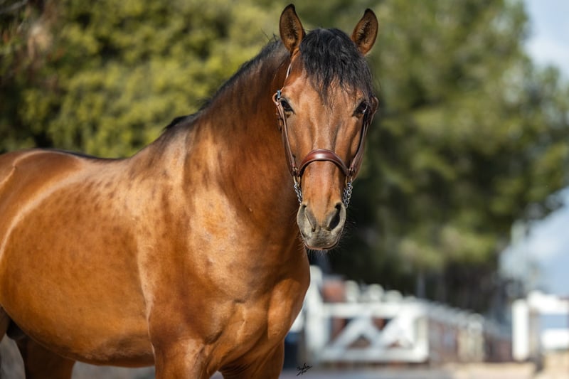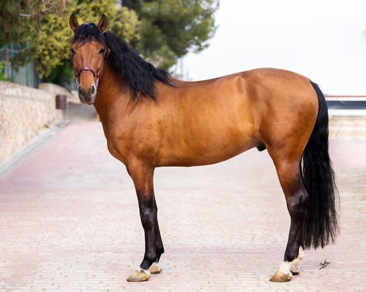 Este hermoso semental PRE tiene 5 años y actualmente mide aproximadamente 1,62 m. Creemos que, una vez adulto, alcanzará los 1,65 m. Tiene una expresión muy dulce, unos movimientos hermosos y elegantes, y un corazón de oro. Su carácter es muy atento y es un caballo que le gusta vincularse con una persona de referencia, con la que puede atravesar momentos difíciles. No es para nada un semental dominante y se comporta de manera sumisa. Ya ha sido montado a nivel básico, lo que acepta con mucha amabilidad, y ya conoce tanto el picadero como el campo. En el futuro, nos lo imaginamos en diversas disciplinas, tanto en doma, en working equitation, en cría o simplemente como compañero de ocio. Actualmente vive con su criadora en Barcelona, España, quien cría a sus caballos con mucho amor, paciencia y espacio. Hasta su primer año de vida, vivió en un gran grupo con su madre y otras yeguas con sus potros. Allí tenían un gran prado en un área protegida con colinas y terreno irregular, lo que le permitió desarrollar habilidades sociales y seguridad en sus pasos. Luego, desde su primer año, vivió en un grupo de sementales jóvenes, donde pudo disfrutar de su juventud. Aproximadamente a los 4 años, fue estabulado con acceso diario a un paddock junto a otros caballos. Es un joven semental maravilloso con un gran corazón, en busca de su persona especial para recorrer juntos su camino. Las radiografías ya están disponibles, en las que se detectó un pequeño chip que no le afecta, por lo que el veterinario no lo operaría; sin embargo, si se desea, esto también se puede realizar en España. La castración también es posible en el lugar. Ubicación: Barcelona, España, se puede organizar fácilmente un encuentro en España y el transporte.