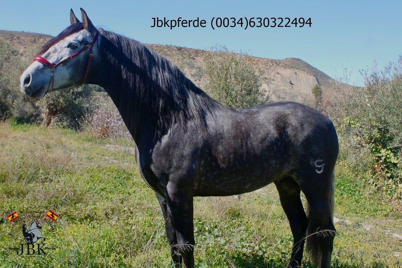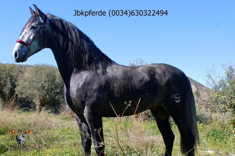 Mit PRE Hengst Icaro haben wir ein Exemplar aus den Cartujano Linien. Er wurde am 06/01/2020 geboren und ist derzeit 1, 62 m gross. Icaro ist sehr gut erzogen, diszipliniert bei der Arbeit und er hat ein waches Köpfchen und lernt sehr rasch. Seine Vorfahren entstammen den Gestüten Salvatierra, Novales, Terry, Los Callejones del Duende, und sein Vater Mensajero XX II enstammt dem Gestüt Valdeoliva. Mit aktuellen Röntgenbildern ohne Befund.