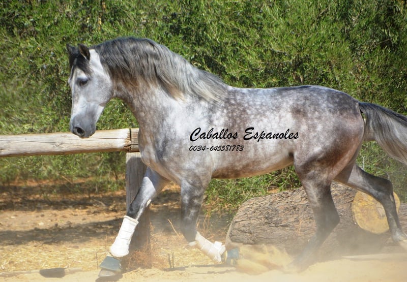 Przepiękny ogier PRE w barokowym typie. Ogier posiada trzy dobre podstawowe chody. Jest posłuszny w obsłudze i dobrze ułożony. Jeźdzony jest we wszystkich trzech podstawowych chadach, zarówno w terenie, jak i na maneżu. W zeszłym roku zaprezentowano go na SICAB, gdzie pokazał się z bardzo dobrej strony. To wspaniały ogier, który przy odpowiednim wsparciu może się znacznie rozwinąć. Rodowód: Moreno de la Cova Koń jest sprzedawany na zlecenie. Możliwość dalszej nauki u nas. Wkrótce zostanie zorganizowany AKU. Transport międzynarodowy.