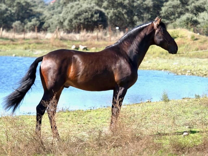 Discover this magnificent Spanish horse, a bay P.R.E. born in 2020 with a height of 1.64 metres. This young horse has been initiated in dressage and already has a solid training base, which makes him perfect to continue his sporting development. With an exceptional character, this horse is the ideal choice for both amateur and professional riders looking for a partner to advance in dressage. His excellent value for money makes him a unique opportunity for those looking for a Spanish horse with great potential. Come and meet this promising P.R.E. horse and be captivated by his elegance, nobility and versatility. Your future in dressage can start with this magnificent horse, don't miss the opportunity to meet him!