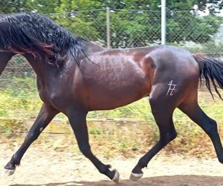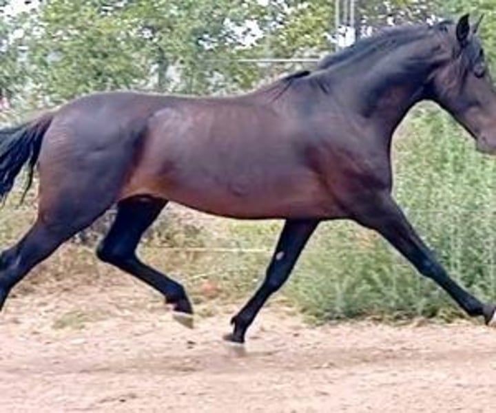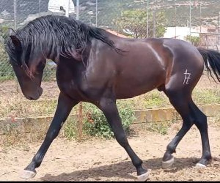 Spectacular Black Foal from Escalera Origins, Ready for the Start of His Training We present to you a remarkable black colt, who promises not only to shine in classic dressage competitions but also to offer extraordinary value as a future stallion. This young horse comes from an impressive and recognized bloodline, making him an unrivaled choice for professionals in the equestrian world. His father, EXCOGIDO XXIII, is a black coat horse from the prestigious shoe of Mr. Fernanda de la Escalera. With a distinguished track record in classic competitions and having been ranked for 2 years at SICAB, EXCOGIDO XXIII comes from the HEBREO XIX line, known for his genetic elite. The foal's dam is an imposing 1,70m black mare, daughter of the renowned classic dressage horse BRASIL VIII, which adds an extra layer of excellence and promise to his lineage. Raised in freedom until now, he is ready to begin his training, showing a nobility and a temperament that portends a promising future both on the track and in breeding. With his remarkable genetics and impressive body shape, this colt is not only ideal for competing at the highest level, but also possesses all the qualities desired in a stallion. This horse is perfect for a professional looking to not only compete with a spectacular black horse, but also to invest in a future stallion. He offer the unique opportunity to shape and develop exceptional talent from the start, ensuring that every aspect of their training reflects the quality of their heritage. IberHorse.com: We connect professionals with future legends. If this black colt has captured your interest and you are looking for a horse that can raise your arena and contribute to your breeding line, please do not hesitate to contact us for more information or to arrange a viewing. Now is the perfect time to take the reins of a future champion and lead them to greatness