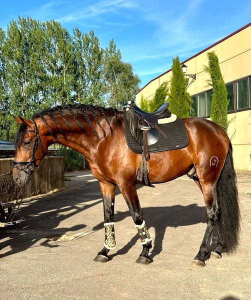5 years old stallion. Registered in the ANCCE stud book. Grandson of ERMITAÑO III! Already compeeting in dressage with great results round 73%-76% (4 years old youngster´s test). Sincere and willing to work. Excellent character. Ridden also by children. PIRO free - can travel to USA. X-Rays available. The horse is located in Spain