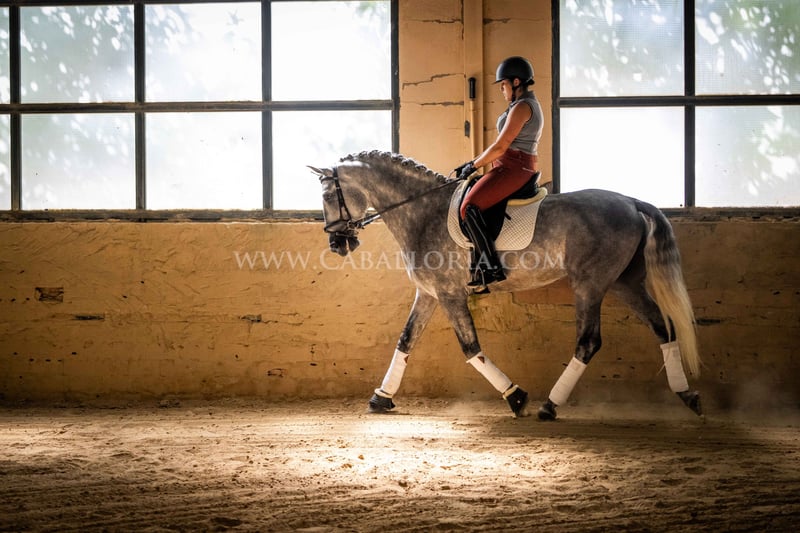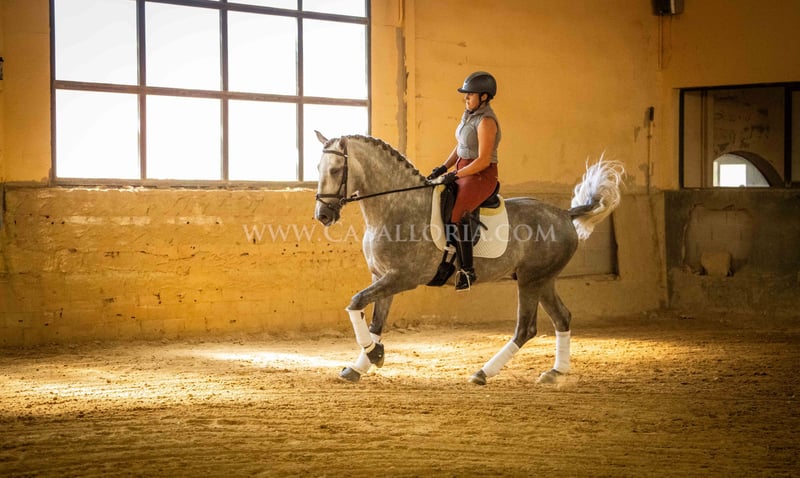 Name: Soimo Date of Birth: 08.06.2020 Height: 1.67 m Training Level: Level 2 ANCCE Classification: Reproductor básico (approved) Soimo is a young and promising PRE stallion with a height of 167 cm. He has an absolutely lovely and uncomplicated character, making him an ideal partner for everyday life. Despite his young age, he has already gained some competition experience, achieving an impressive 70%. Soimo is approved and is currently in training at Level 2 (E), with great potential for the future. More information available upon request! *All visual content, including photos and videos presented by Caballoria S.L., is protected by copyright. This means that reproduction, distribution, exhibition, or any use of these materials without the express written consent of Caballoria S.L. is strictly prohibited. Copyright ensures that creators retain control over their works and are appropriately recognized and compensated for their use.