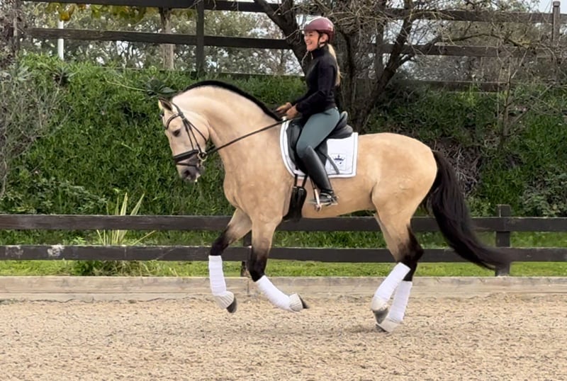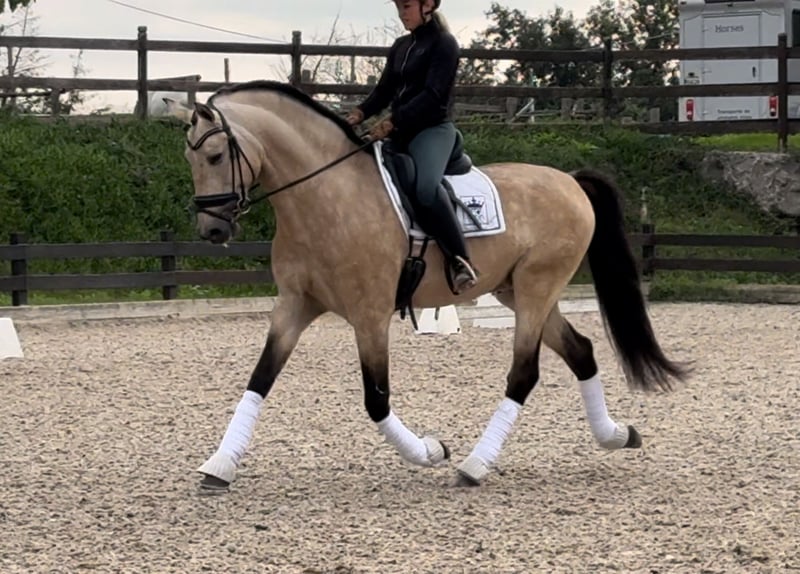What an incredible horse with versatile movements and capable to go upper levels easily, this gentleman is ideal for families that are searching a horse to keep forever and enjoy riding him in arena and outside too. His excellent behavior make of him the perfect partner for do dressage or whatever you want to do, He is solid working the third level with changes both ways. He has experience competing outside and he settles really well.