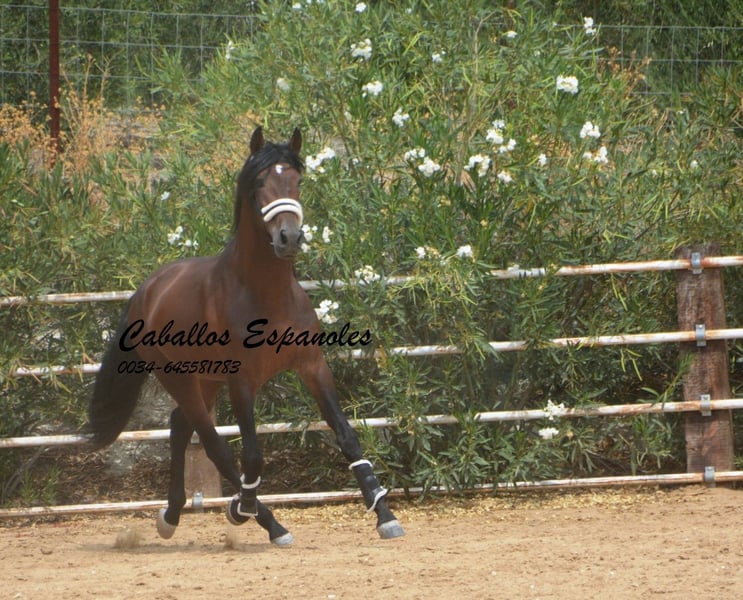 Wat een topper! Hij zal zeker niet over het hoofd worden gezien in de dressuurbak. Voor wie op zoek is naar een PRE-hengst met goede beweging, hier is hij. Hij komt van het gerenommeerde stal Felipe Garrocho en is dressuurmatig opgeleid – van vaderskant vinden we veel Candau. De jonge hengst is braaf in de omgang, rijdt in de basisgangen en er wordt gewerkt aan de zijgangen. De hengst wordt 3-4 keer per week getraind, zowel in de bak als buiten op de grote piste. Voor knuffelsessies is hij altijd beschikbaar. Hij beschikt over drie uitstekende basisgangen, heeft een mooie grootte en is daardoor zeer geschikt voor de dressuur. Het paard wordt in opdracht verkocht. Hij kan indien gewenst bij ons nog in training blijven. Een keuring wordt op korte termijn georganiseerd. Internationaal transport mogelijk.