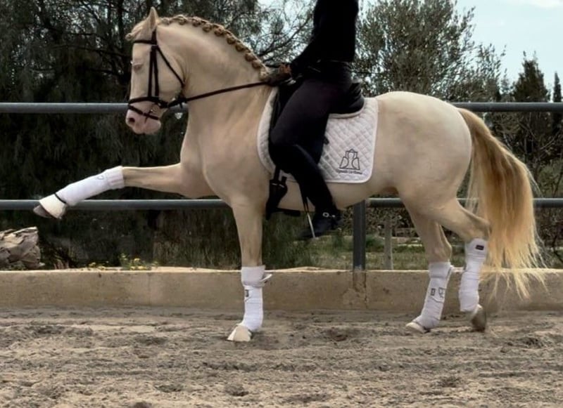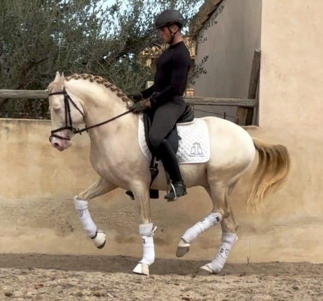 perfect perlino for horse riders amateurs Some horses have this ability to put their horse rider at ease from the very first moments. Sweet, with her superbe coat perlino and his exemplary character, is one of them. Gentle, calm and always ready to work, it represents a perfect choice for a horse rider amateur wanting a reliable, pleasant and progressive horse. His training has progressed well: he already performs the foot changes at the canter, in addition to having an excellent working baseHis natural balance and his desire to do well make each session easier, whether it is to perfect exercises in the arena or to enjoy a walk in complete serenity. Dolche is not only a pleasure to ride, It is also a horse that attracts all eyes. Its bright and elegant perlino color makes it a real gem under the saddle. But beyond his appearance, it is his temperament that makes the difference : calm, attentive and always ready to respond to the requests of his horse rider with gentleness and precision. If you are looking for a horse that is both beautiful, reliable and easy to ride, Dolche is a no-brainer. An ideal companion for progressing in dressage without stress and enjoying every moment spent on horseback. At IberHorse, we select horses made to be enjoyed every day. If you think Dolche is the one for you, let's talk. ------------------------------------------------ This horse has been selected by IberHorse.com after passing our rigorous health, behavior, and training tests. Discover more photos and videos by searching its name in our catalog: iberhorse.com/catalogue/ At IberHorse, we know that a horse is more than just a purchase – it’s a lifelong companion. That’s why we offer you: ✅ A wide selection of carefully chosen horses. ✅ A fast and stress-free acquisition process. ✅ Professional and personalized support before, during, and after your purchase. ✅ A full-service experience, including veterinary checks and international transport. Trust our 13 years of experience and find your ideal horse with IberHorse!