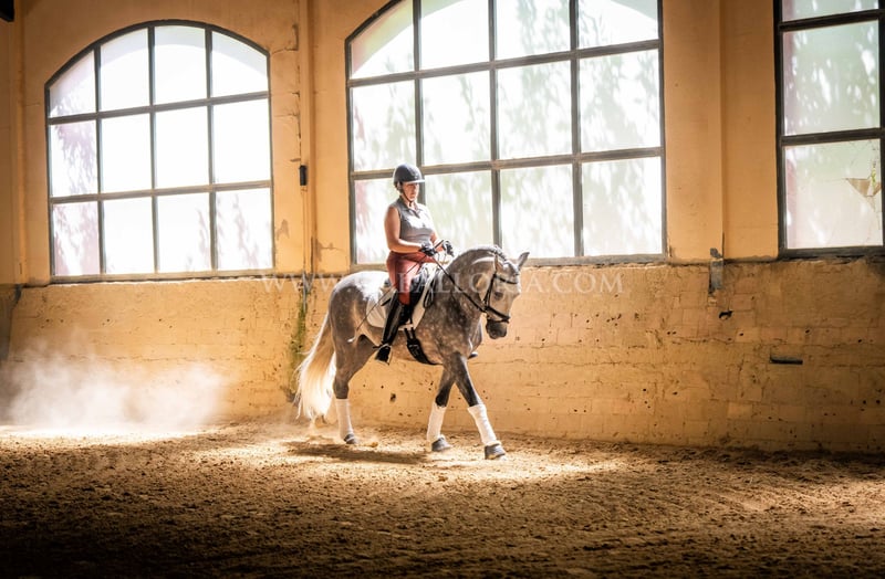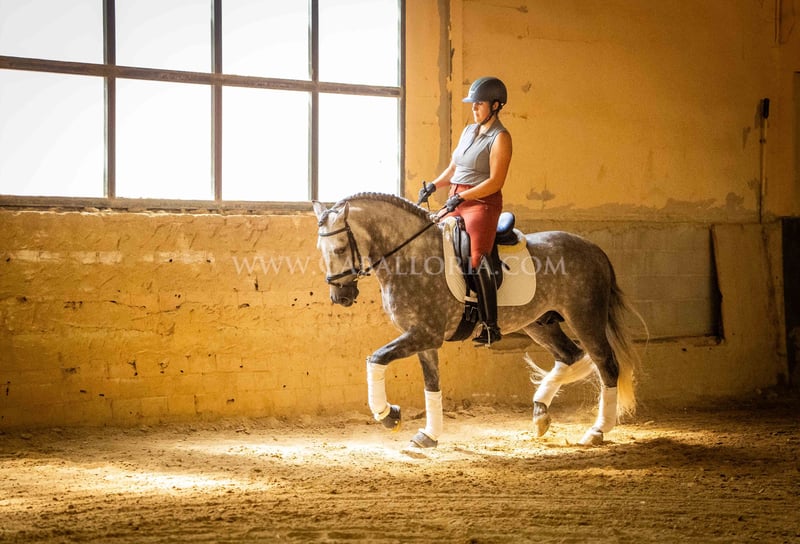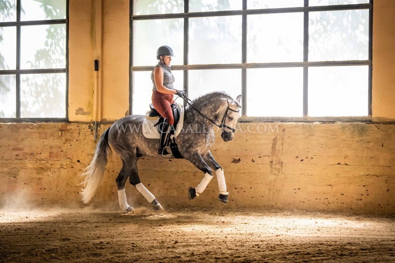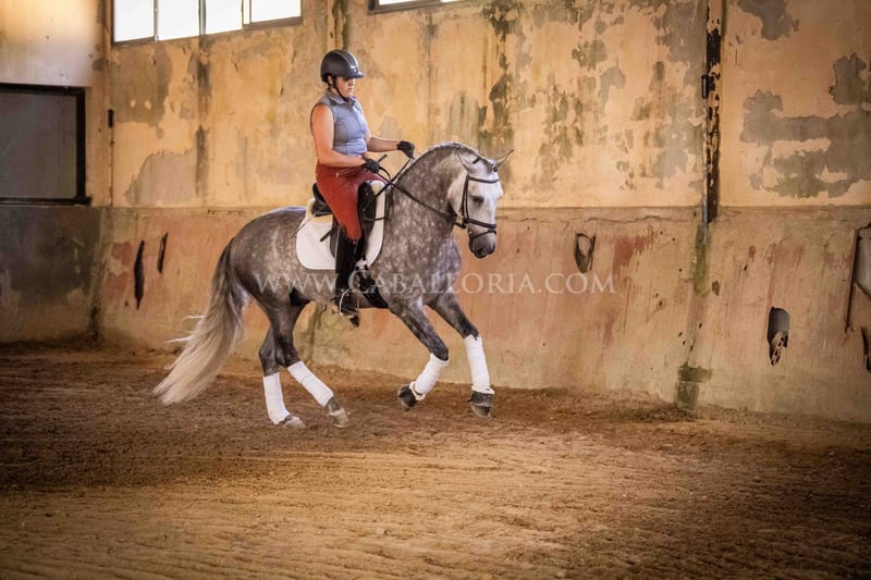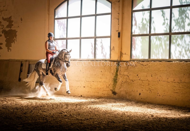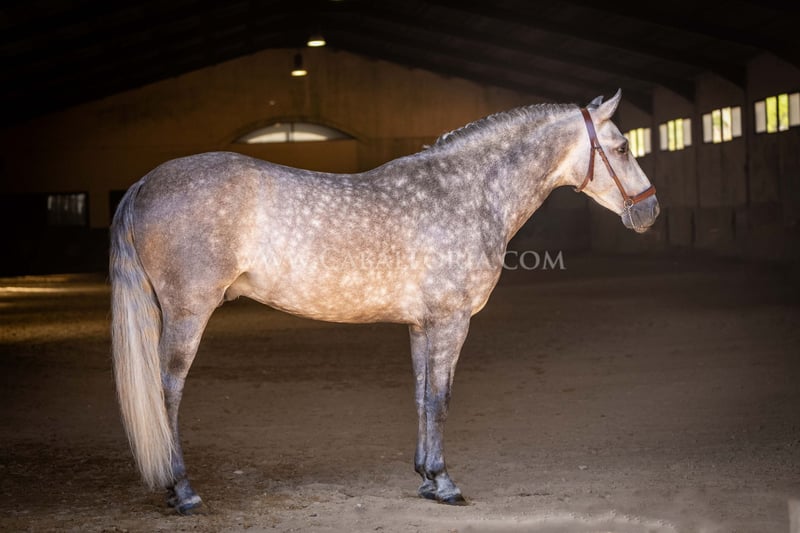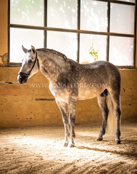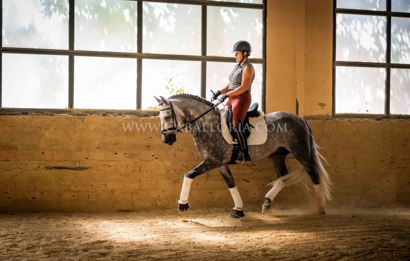 Name: Ziago Born on: 24.05.2019 Height: 1,62 m Training level: Level 3/4 ANCCE classification: Reproductor básico (licensed) Ziago is a cooperative and uncomplicated PRE stallion who is perfect for young riders thanks to his pleasant nature. At 1.62 m tall and trained to level 3/4, he is a reliable partner, whether in training or in everyday handling. His calm and balanced nature makes him particularly interesting for female riders who value a safe and easy-to-handle partner, both in dressage and leisure riding. Information on request! *All visual content, including photos and videos, presented by Caballoria S.L. are protected by copyright. This means that the reproduction, distribution, exhibition or any use of these materials without the express and written consent of Caballoria S.L. is strictly prohibited. Copyright law ensures that authors retain control over their works and are appropriately recognized and compensated for their use.