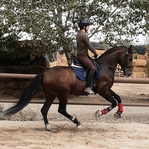 Un caballo joven con clase, potencial...y un gran corazón. Con una locomoción natural de gran calidad y un carácter de lo más entrañable, este joven caballo ya lo tiene todo para convertirse en un excelente competidor en doma clásica. Su entrenamiento es muy suave, respetando su ritmo y asegurando que conserve su excelente actitud: es un caballo joven, noble, honesto y muy voluntarioso. Cada día confirma su excelente equilibrio mental y su gran corazón. Hijo de un caballo que compitió en Grandes Premios, es digno de sus orígenes: el equilibrio mental y la nobleza del linaje Leviton (Yeguada Militar), la calidad de las zonas de Granda, la elegancia y distinción propias de los caballos de Bohórquez. Todo esto ya se aprecia en su apariencia: posee una locomoción fluida, expresiva y armoniosa, lo que augura un futuro prometedor en la doma clásica. Si busca un caballo joven con altas aspiraciones en competición, este merece toda su atención. En IberHorseSeleccionamos cuidadosamente cada caballo que ofrecemos para competición. Si este caballo joven le ha interesado, no dude en contactarnos: le daremos todos los detalles y le ayudaremos a evaluar si se adapta a su proyecto.