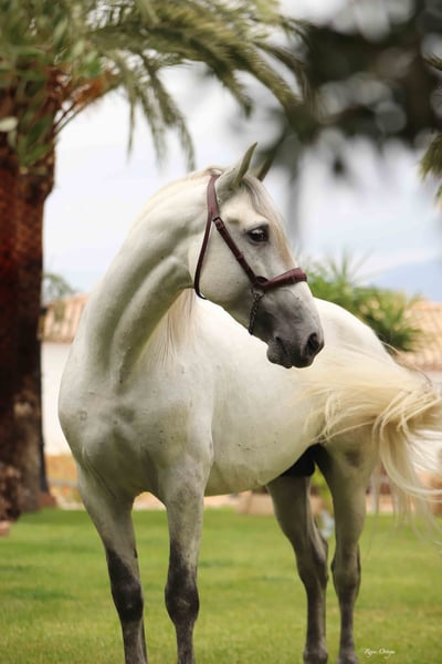 Decisivo CA is a beautiful young horse with three quality gaits and a very good character, docile and noble. His temperament is calm, friendly and trusting with people, all this makes his handling easy. Currently, he has a level of dressage according to his age: lateral exercises, trotting, backward steps. He also has very good aptitudes and predisposition to continue evolving in his learning process. His genetic line on the paternal side comes from Fer Davinci, a stallion bred by Yeguada Ferrero, with the Mañoso II F line. On the maternal side, Decisivo is a son of Decisiva MJB with El Hierro de Bohorquez, by Perdigón XVIII, Elite Breeder.