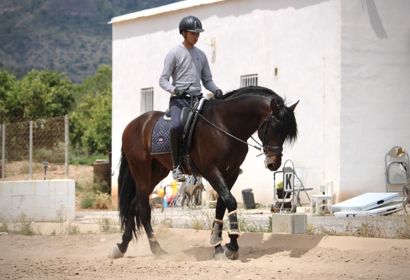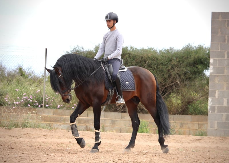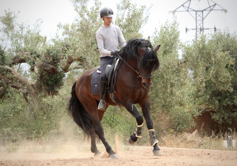 Si vous recherchez un joyau exceptionnel parmi les PRE, ce magnifique étalon issu de la célèbre élevage de Maria Fernanda de la Escalera est le choix idéal ! JAPONÉS séduit non seulement par son apparence baroque remarquable, mais aussi par son tempérament particulièrement doux et accessible. Cet imposant étalon reste toujours parfaitement connecté à son cavalier, que ce soit en manège ou en extérieur. Actuellement en carrière professionnelle, il a déjà acquis un bon niveau en L et effectue déjà quelques changements de pied en saut. JAPONÉS a également été présenté avec succès lors de concours locaux de dressage. Il possède un potentiel important pour le grand rectangle, mais en raison de son caractère exceptionnel, nous pouvons aussi l’imaginer comme compagnon fidèle pour tout cavalier de loisir. JAPONÉS dispose de radiographies récentes sans anomalies. Situé en Espagne.
