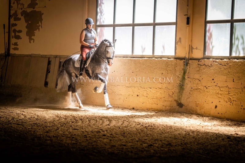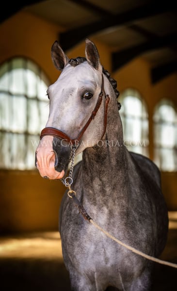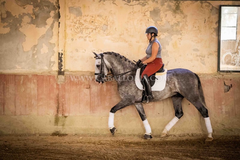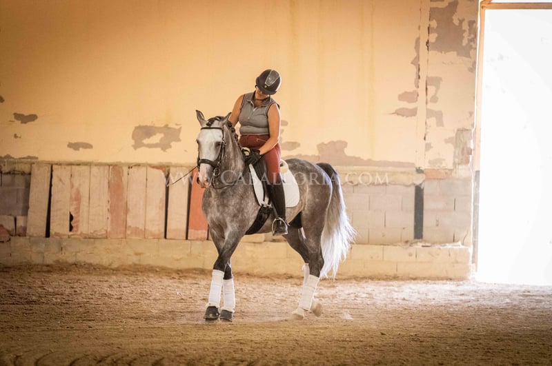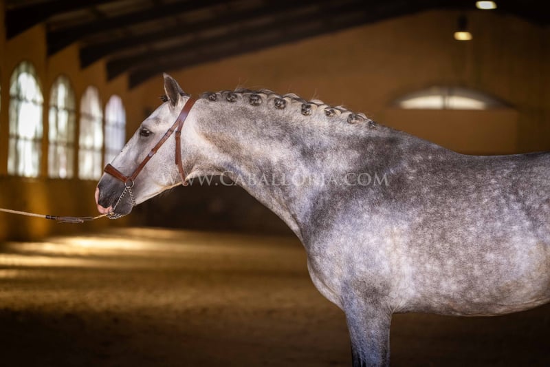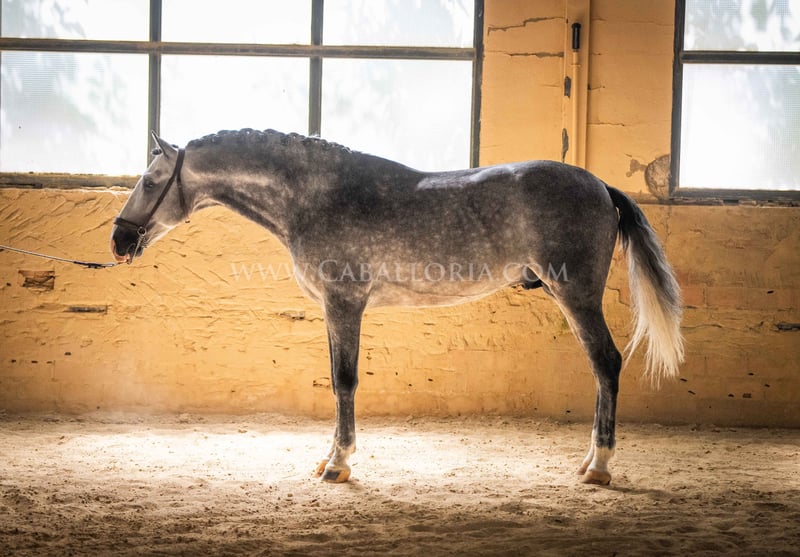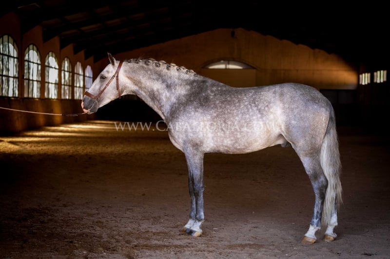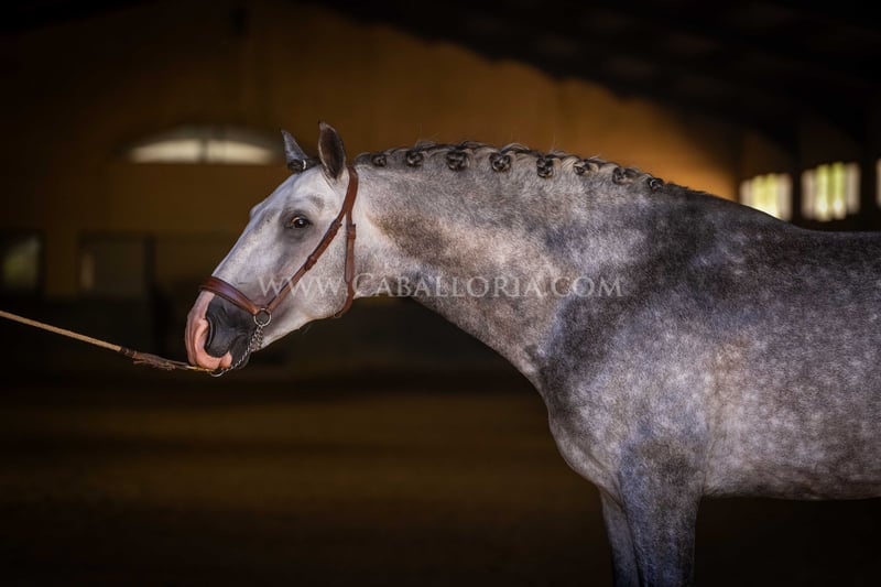 Name: Lukake Momo Born on: 11.06.2019 Height: 1,65 m Training level: L - M (Spanish: Nivel 3 - 4) ANCCE classification: Reproductor básico ( licensed ) Lukake is a licensed and powerful stallion of the Pura Raza Española (PRE). His fine head with the striking blaze gives him a noble charisma. He is ridden in all three basic gaits, has already mastered the piaffe and impresses not only with his ability but also with his strong, self-confident character, characterized by his Yeguada Militar bloodlines. Lukake is a reliable partner, especially in dressage, and shows great potential at a high level. More information on request! *All visual content, including photos and videos, presented by Caballoria S.L. are protected by copyright. This means that the reproduction, distribution, exhibition or any use of these materials without the express and written consent of Caballoria S.L. is strictly prohibited. Copyright law ensures that authors retain control over their works and are appropriately recognized and compensated for their use.