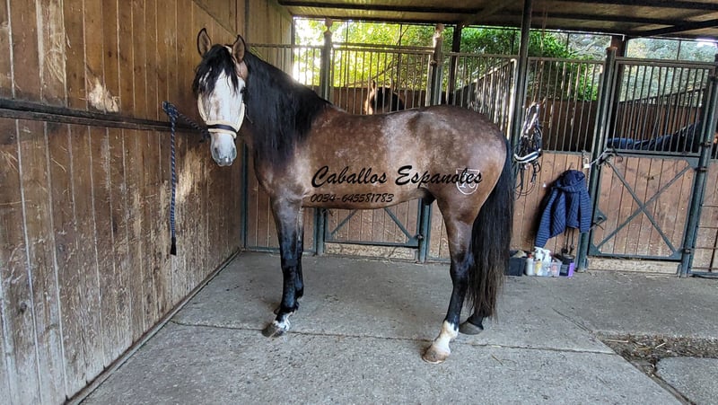 An eye-catcher, this Ponce Campano. This stallion is correct and very harmoniously built. He is equipped with 3 very good basic gaits. The young man is very well-behaved in handling, in the field and on the arena he is hard-working and content. He can do lateral movements and is working on his piaffe and canter changes. He also already shows a nice working canter pirouette. A top horse for the ambitious leisure rider. Pedigree: Camacho Benitez, Marín García, The horse is being sold on commission He can stay with us in training. An AKU will be organized at short notice. International transportation.