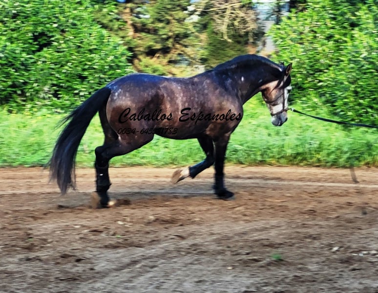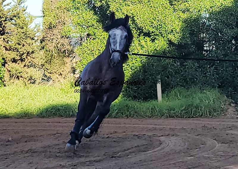 Een blikvanger, deze Ponce Campano. Deze hengst is correct en zeer harmonieus gebouwd. Hij beschikt over 3 zeer goede basisgangen. De jongeman is zeer braaf in de omgang, op het veld en in de piste is hij hardwerkend en vrolijk. Hij kan zijgangen en werkt aan zijn piaffe en galopwissels. Hij laat ook al een mooi werkende galoppirouette zien. Een toppaard voor de ambitieuze vrijetijdsruiter. Stamboom: Camacho Benitez, Marín García, Het paard wordt in opdracht verkocht Hij kan bij ons in training blijven. Een AKU wordt op korte termijn georganiseerd. Internationaal transport.