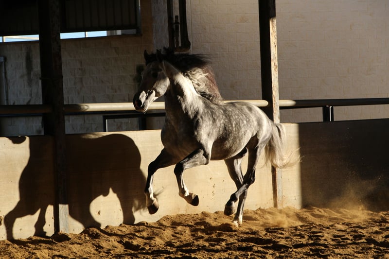 Dieser 2018 geborene spanische Hengst ist das Traumpferd für jemanden, der ein PRE-Pferd mit einem schönen Körperbau sucht. Mit drei guten Grundgangarten ist dieser schöne Schimmel ein komfortables und angenehm zu reitendes Pferd. Derzeit geritten macht er Seitengänge, Piaffe, Passage, Spanischer Schritt und leitet fliegende Wechsel und Pirouetten ein. Er ist ein perfekter Freizeitbegleiter, ein Pferd, das Spaß am Üben im Viereck hat und auch im Stall und mit anderen Pferden sehr brav. Er ist ein ganz besonderes Pferd, mit dem man überall auffällt, wo man mit ihm ist.