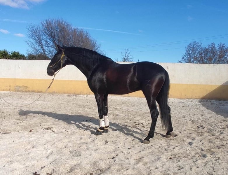 6 years old black PRE Stallion in sport type. In proffesional training according to his age. Walk piruets, shoulder in, counter canter, canter half pass, simple changes. Initiated in piaffe and passage. Already with competition experience in 5 years old's class (with results 68%-69%). Brothers also compeeting successfully. Excellent dressage prospect. Licensed stallion, alredy with sons registered. Great character. From Piroplasmosis free zone.