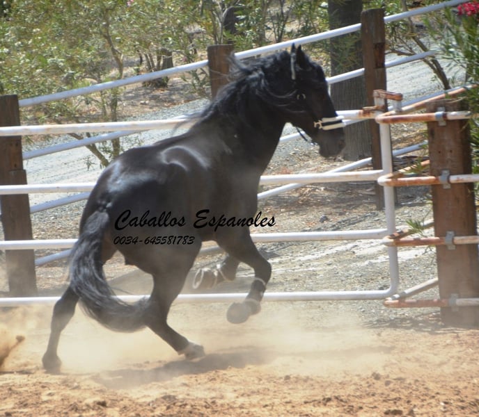 Este precioso semental PRE busca un nuevo hogar. Este expresivo semental PRE tiene un aspecto elegante con una crin salvaje. El semental está correctamente construido con una base estable. Incluso en el box, sabe cómo llamar la atención. Su crin salvaje resalta su belleza. El semental se comporta bien y es mimoso. Esta belleza negra está equipada con tres buenos aires básicos. Su doma fue tardía. Se le ha montado en los aires básicos y es capaz de ceder las piernas y meter los hombros. También se le ha montado a campo traviesa, tanto solo como con otros caballos. El caballo se vende en comisión Puede seguir entrenando con nosotros. Se organizará un AKU a corto plazo. Transporte internacional.