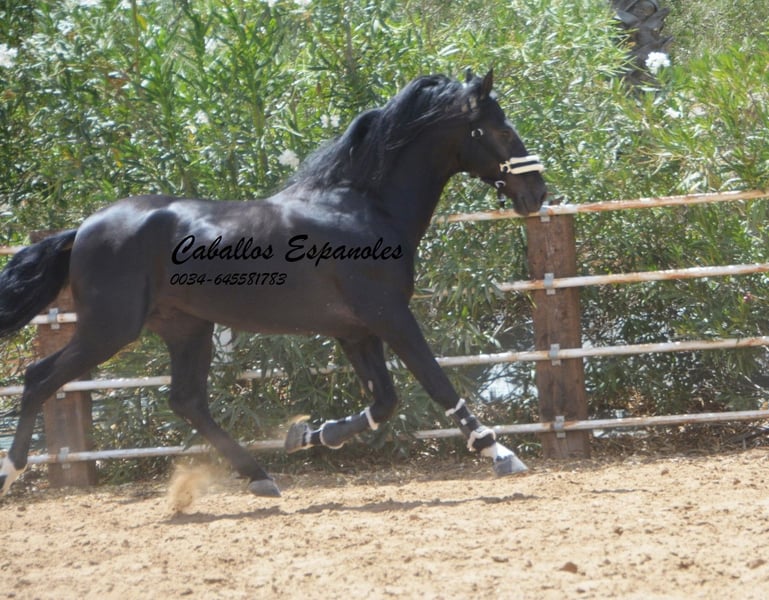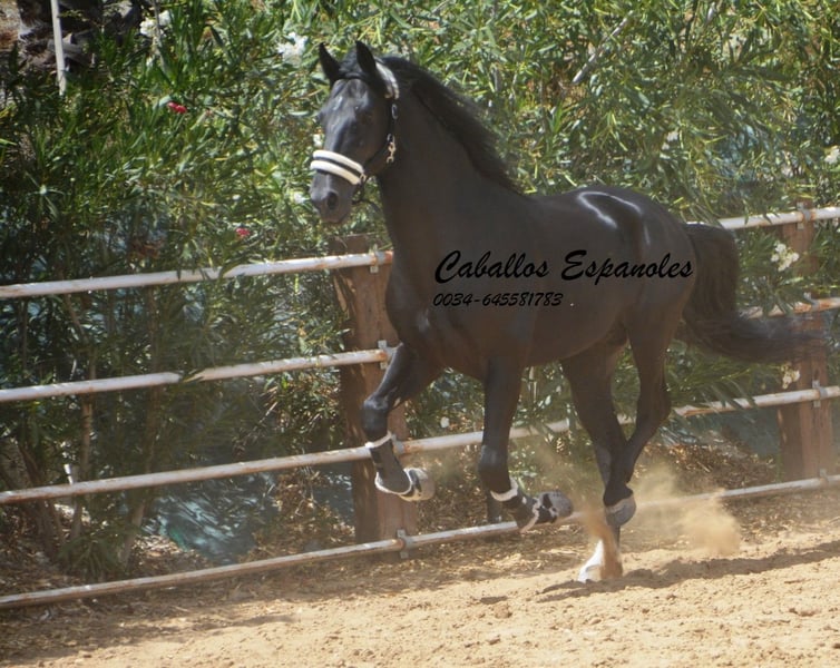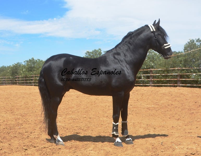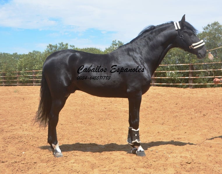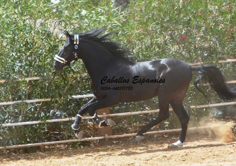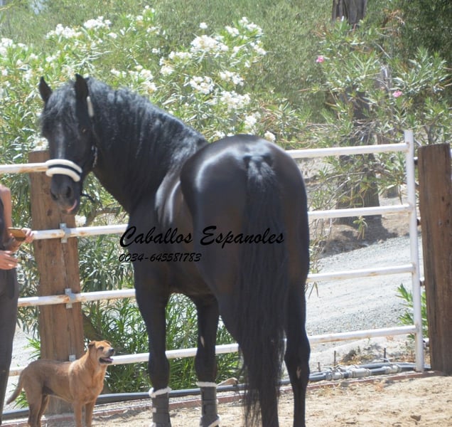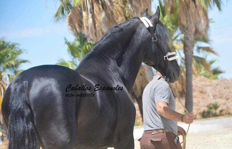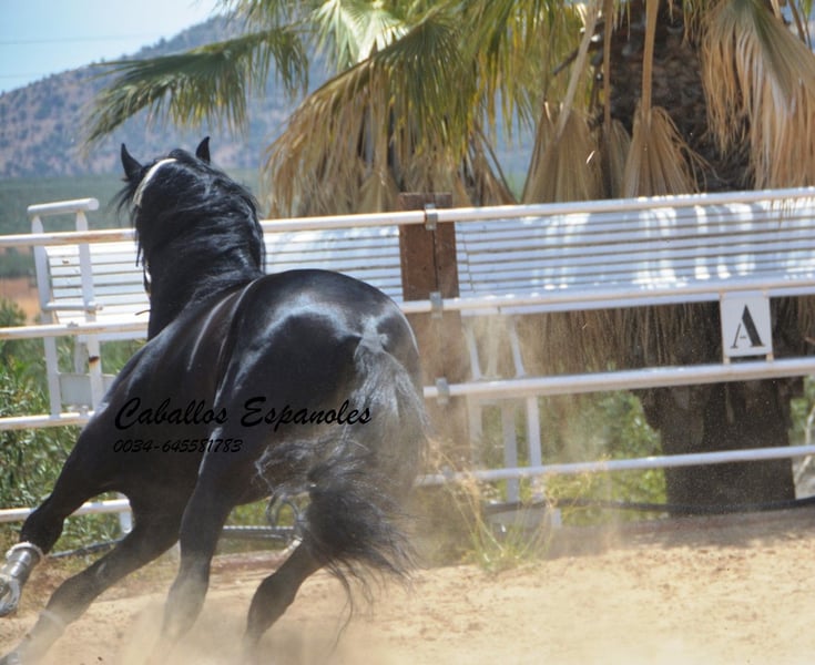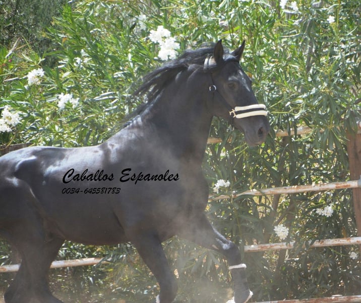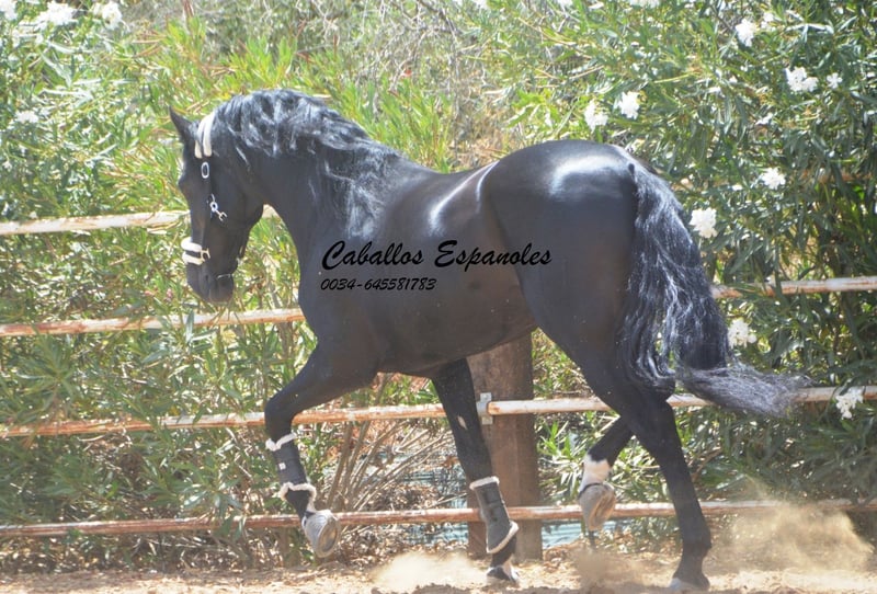 Ce magnifique étalon PRE cherche un nouveau foyer. Cet étalon PRE très expressif se présente avec une élégance et une crinière sauvage. L'étalon est bien construit, avec une base stable. Déjà dans le box, il sait attirer tous les regards. Sa crinière ondulée met encore plus en valeur sa beauté. L'étalon est doux et câlin au contact. Cette beauté noire est dotée de trois bonnes allures de base. Il a été monté tardivement. Il est monté aux trois allures de base, sait faire des déplacements latéraux et des épaules en dedans. Il a également été en extérieur, seul et avec d'autres chevaux. Le cheval est vendu pour le compte d'un tiers. Il peut rester en formation chez nous. Une visite vétérinaire sera organisée à court terme. Transport international.