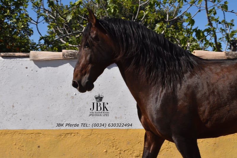 Caballo PRE, semental Tritón, nacido en 2005, 2018. Ha recibido una formación sólida y también cuenta con experiencia en exhibiciones. Destaca en todos los aspectos, tanto en carácter como en comportamiento, y por supuesto, bajo la montura. Nunca ha tenido una experiencia negativa en su vida y siempre ha sido tratado y entrenado con cuidado y respeto individual. Quien busque un compañero confiable que esté a su lado en las buenas y en las malas: aquí lo tiene.