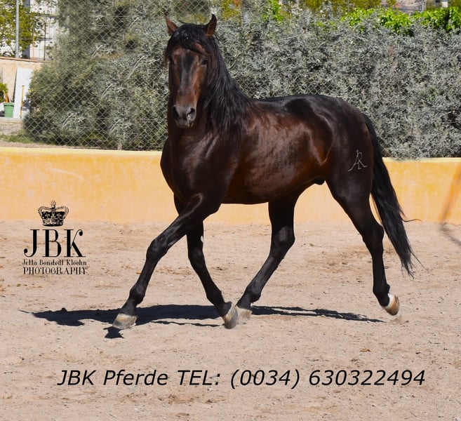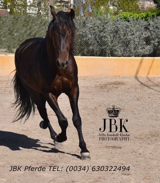 PRE Hengst Triton wurde am 2005.2018. Er hat eine solide Ausbildung genossen und hat ebenso Showerfahrung. Er glänzt in allen Bereichen, sowohl charakterlich, als auch im Umgang und natürlich ebenso unter dem Reiter. Nie hat er etwas Böses erfahren in seinem Leben und wurde immer sorgfätig und pro Pferd behandelt und trainiert. Triton beherrscht alle Seitengänge, ist gut piaffiert, geht Galoppwechsel und lernt gerade die ersten Passagetritte. Wer einen unerschrockenen Partner sucht, der mit einem durch dick und dünn geht: Hier ist er.