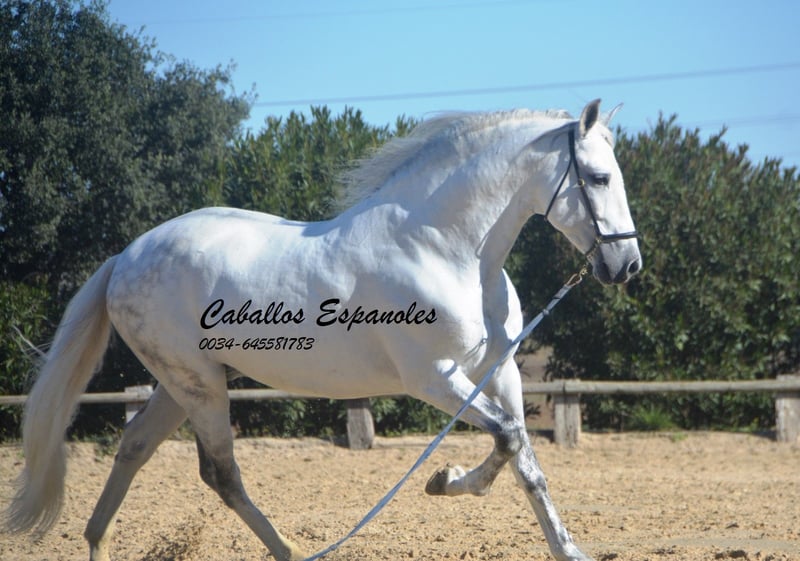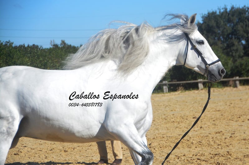 Deze fantastisch mooie hengst draagt de oude barokke lijnen. Correct en harmonieus gebouwd met een elegante barokke uitstraling. Gewoon een droom van een PRE. De hengst is goedgekeurd en heeft 3 zonen. Hij is bereden in de basisgangen, kan zijgangen en werkt aan galopwissels. Een droompaard voor elke PRE-liefhebber. Het paard wordt verkocht in opdracht Hij is welkom om bij ons in training te blijven. Een AKU wordt op korte termijn georganiseerd. Internationaal transport.