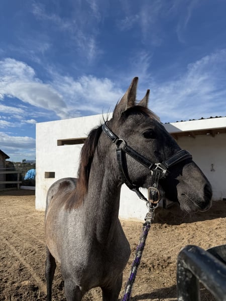 With a heavy heart, I’m offering my sweet 7-month-old colt for sale. He is very willing to learn, kind in character, and moves beautifully with great potential for both jumping and dressage. ✨ Dam: PRE ✨ Sire: KWPN/Friesian ✨ Expected height: around 1.65 – 1.70 m ✨ Will turn grey ✨ Halter trained – can stand tied and walk with you A lovely young colt with a bright future ahead! 📩 Feel free to send me a private message for more information or questions.